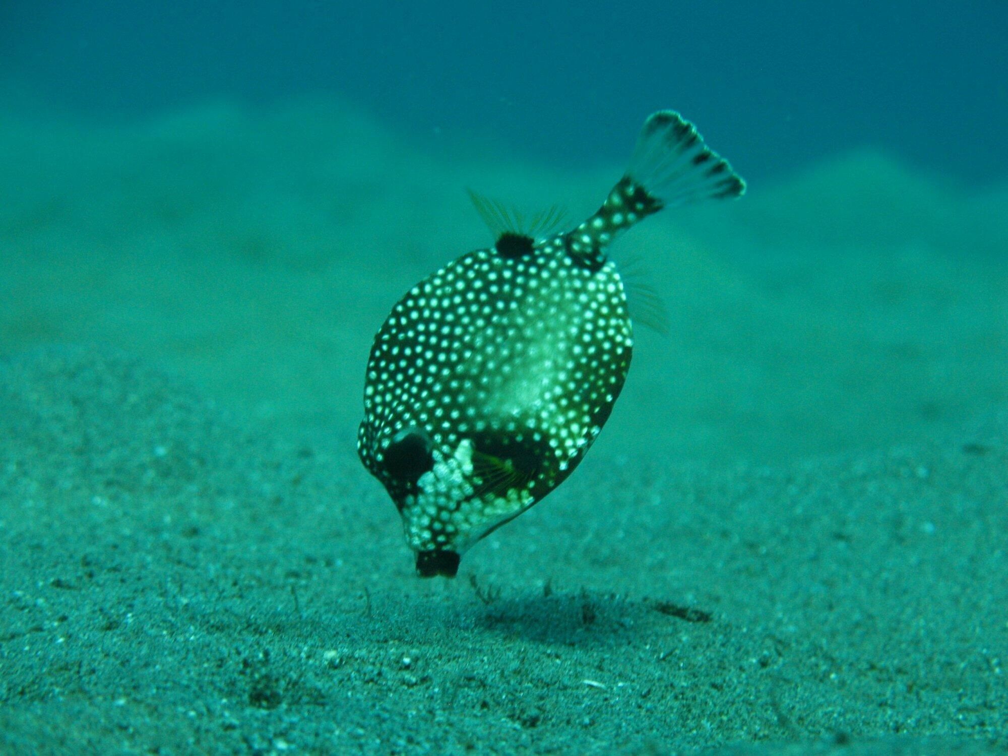 It is very interesting to contemplate as it swims slowly and does half-turns on the spot. Avoid touching them with your flippers.